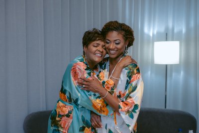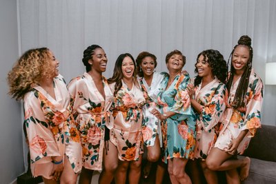 Long before the first vow was spoken, the tone for the day was set in a suite filled with laughter, hairspray, and the rustle of satin robes. Kellyn was surrounded by her bridal party—six women who have shown up for her not just on this day but through every season of life that led here. Each of them wore a floral satin kimono in blush and peach tones, with one distinctive robe in soft teal setting the bride apart from her crew.