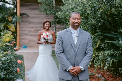 First looks have become a beloved tradition in modern weddings, and for good reason: they give the couple a private moment before the ceremony, a breath of calm before the beautiful storm. But what no one tells you is how different each one is. Some grooms gasp. Some go still. Devon’s face, when he turned and saw Kellyn for the first time in her gown, broke into a smile so wide and so unguarded that the tropical garden around them seemed to fade into soft focus.