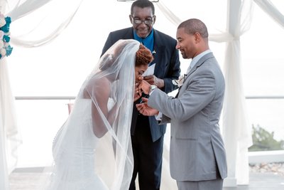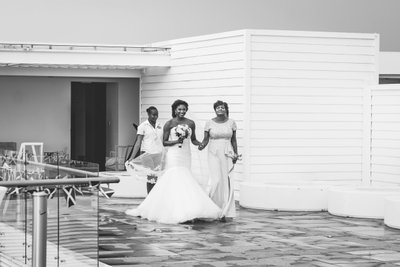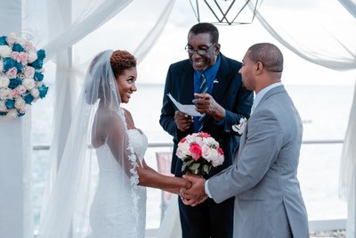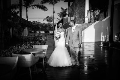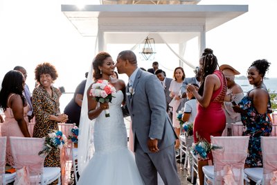 Rain on a wedding day carries a particular symbolism in many cultures: it is considered a blessing, a cleansing, a sign of good fortune. Standing under an open sky at Azul Beach Resort Negril with the Caribbean Sea visible just beyond the terrace railing, Kellyn and Devon tied their knot in the rain, and it was not a disruption. It was a gift.