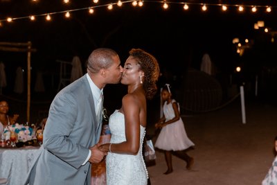 The first dance brought Kellyn and Devon together in the center of the dance floor—still sand, still warm, still lit by those hanging string lights—and for a few minutes, the rest of the world fell away. She had changed out of her veil, her natural curls framing her face softly in the evening light. He held her close. They looked at each other the way they had looked at each other all day: like they were the most fortunate people on the planet.