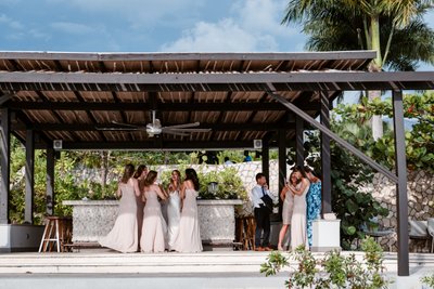 This image says something important about what makes a destination wedding at The Cliff Hotel so special: it isn’t just the setting, extraordinary as it is. It’s the people who work here. The warmth and humour and genuine hospitality of the Jamaican staff is woven through every great wedding held at this property, and this photograph captures it perfectly.