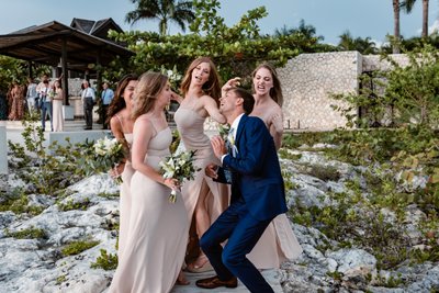 It is impossible to look at this photograph and not grin. It captures something essential about the spirit of this wedding: people who came to celebrate, who left their inhibitions at check-in, and who understood that a destination wedding in Jamaica is not the time for half-measures.