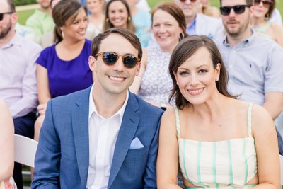 One of the things that made Marina and John's wedding so special was their guests. This was a destination wedding done right — an intimate gathering of people who truly love this couple, who made the journey to Jamaica because they wouldn't have missed it for the world. And they showed up in style. The guests embraced the tropical dress code enthusiastically, filling the outdoor ceremony and reception with an explosion of color: floral shirts, coral and turquoise dresses, printed sundresses and linen blazers. The result was a crowd that looked like a celebration in and of itself.