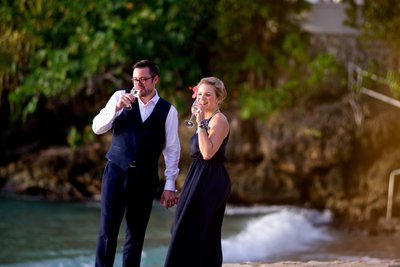 Some love stories deserve a backdrop as extraordinary as the couple themselves. For Xenia and Justin, that backdrop was Jamaica Inn — a legendary boutique resort nestled on a private cove in Ocho Rios, where old-world Caribbean charm meets timeless elegance. Their photo shoot captured two distinct looks across two magical evenings: first in coordinating navy, celebrating with champagne amid the resort's lush gardens and whitewashed colonial architecture; then in white, the pair wandering barefoot along a deserted beach as the clouds painted the sky in soft pastels. What unfolded in front of the lens was not a posed performance — it was a genuine portrait of two people completely at ease with one another, utterly in love.