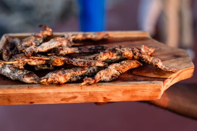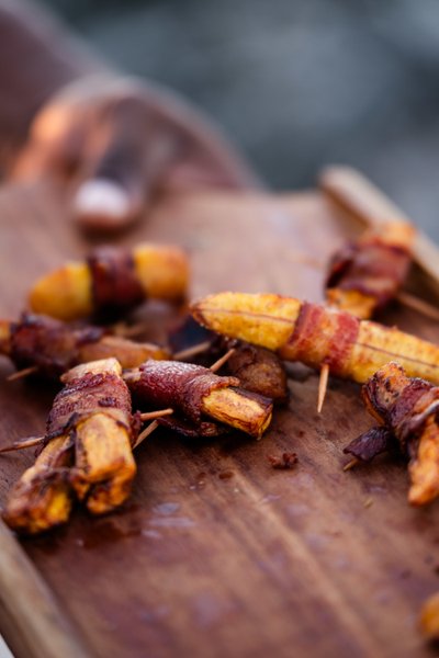 The food was spectacular, naturally — jerk chicken skewers on a wooden board, glistening and charred, deeply spiced, the kind of thing that reminds you exactly where you are and makes you grateful for it.
