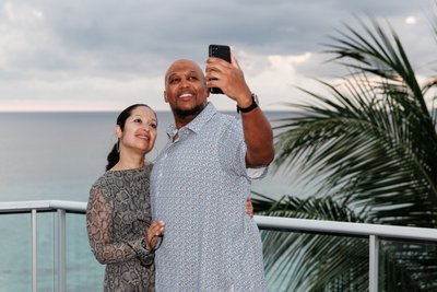 There is a particular kind of wedding day that refuses to follow a script — and not because anything goes wrong, but because what actually happens turns out to be more beautiful, more dramatic, and more alive than anything anyone could have planned. Ian and Natalia's wedding at S Hotel in Montego Bay, Jamaica was exactly that kind of day. It moved from the dappled morning light of one of the Caribbean's most iconic beaches to a rooftop reception under a sky that turned into something from a painting — brooding storm clouds rolling over the mountains, the sea below lit in shifting pewter and gold, the last fire of sundown burning along the horizon while the newlyweds danced above it all.