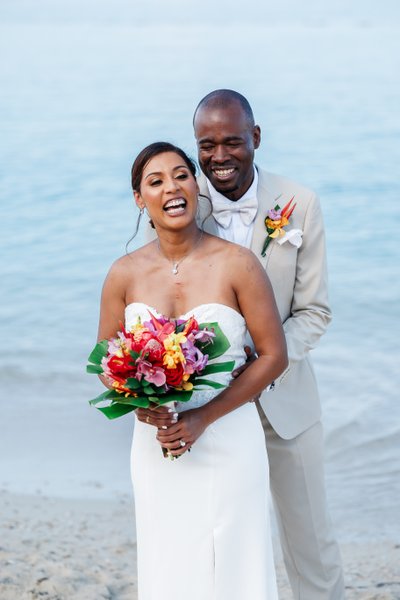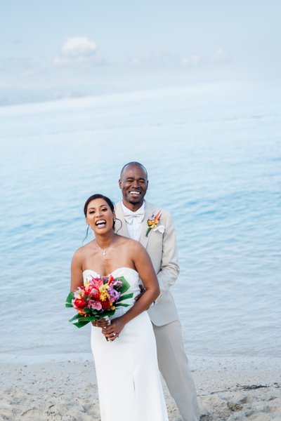 It was a day in two acts: the intimate, sun-dappled softness of a morning ceremony under ancient sea grape trees on Doctor's Cave Beach, and the epic, cinematic drama of a sunset rooftop reception that looked as though the sky itself had dressed for the occasion. Between those two moments was a love story told in images of quiet joy, easy laughter, and two people who were exactly where they were supposed to be.