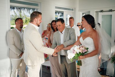 The Unity Knot is a beautiful alternative to the unity candle or sand ceremony, and it produces something tangible and lasting: a physical knot the couple keeps as a reminder of the vow they made over the water on this particular afternoon in Jamaica. For Lindsey and Jayson, it was a perfect choice — a moment of stillness and meaning at the heart of a day that was full of both.