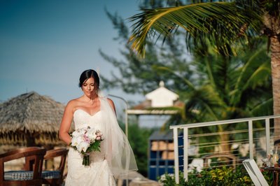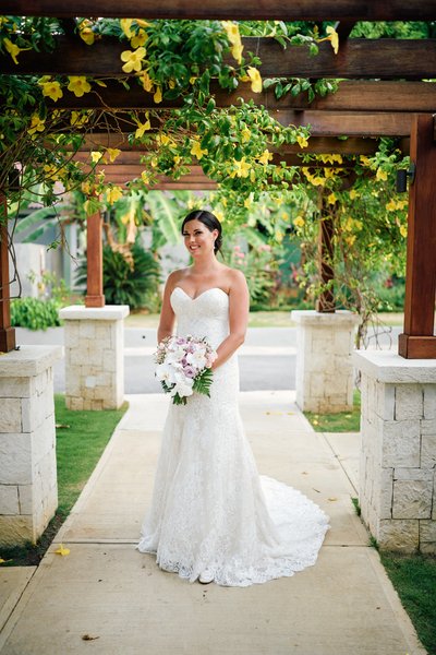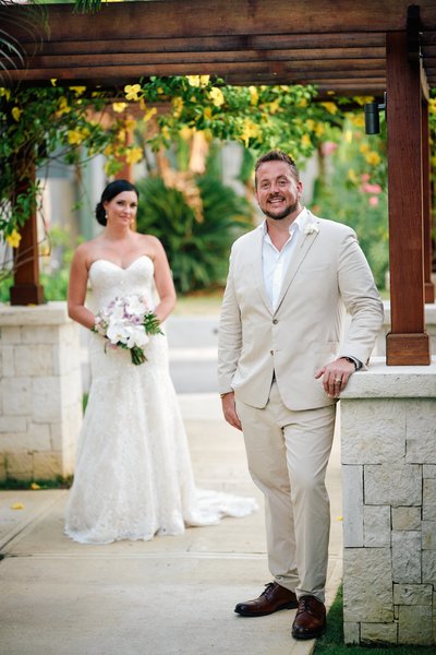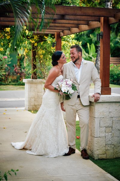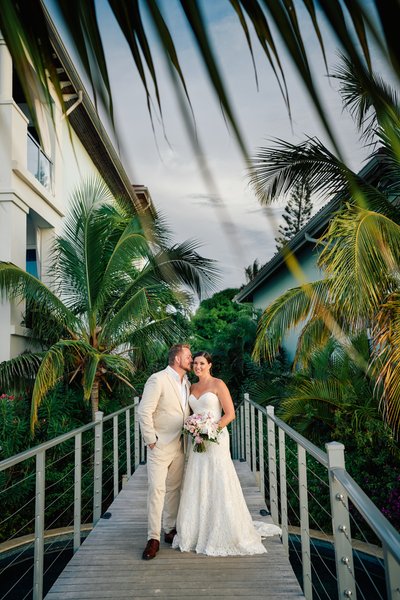 With the ceremony complete, the newlyweds moved through the resort grounds for portraits, and Sandals Montego Bay delivered backdrop after backdrop of effortless tropical beauty.