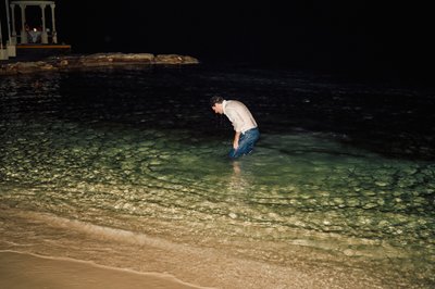 The night continued with dancing on the beach, guests swaying under the palms as a low-flying plane crossed overhead — caught perfectly in one candid frame, a reminder that the real world and its runway are never far away, even in paradise. And somewhere between the dinner tables and the shoreline, in one of the most delightfully spontaneous images of the night, Lindsey waded into the illuminated Caribbean waters in her full wedding gown — flanked by two friends equally unbothered by the state of their clothes — all three of them laughing into the dark Jamaican night.